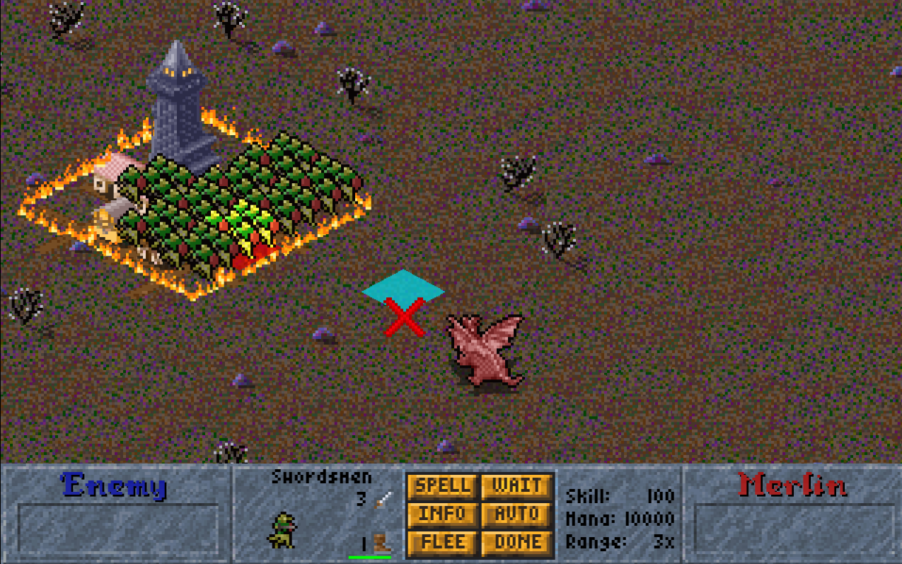 The game was ended due to an ever-growing swarm of invisible raiders with zero hit points swarming around a different town I had conquered on Myrror.